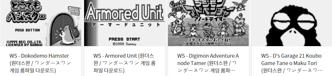 실행용 에뮬레이터 : Oswan (원더스완 - Wonder Swan) 게임 공략 - 게임 치트코드 - 게임 비기 & 팁 - 한글패치 - 영문패치 게임 세이브 파일 - 강제 세이브 파일 - 게임 표지 - 게임 스크린샷 고